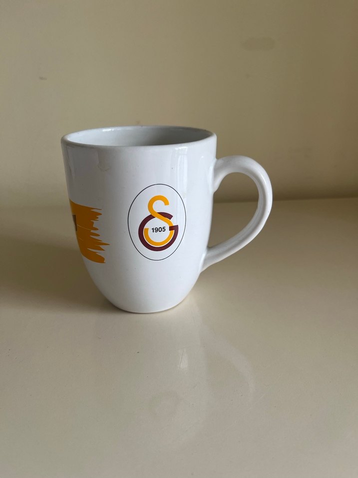 Galatasaray logosu ve 1905 yazısı bulunan beyaz parlak kupa bardak. Rahat tutma sapı ve pürüzsüz yüzeye sahiptir. ☕