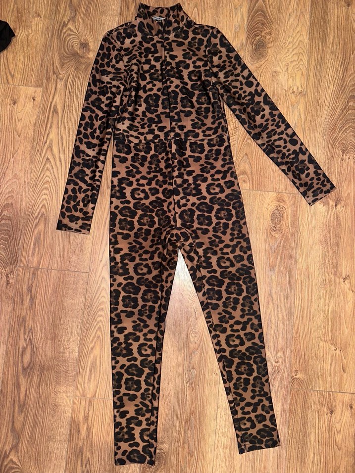 LİSMİNA Leopar Desenli Uzun Kollu Kadın Tulum