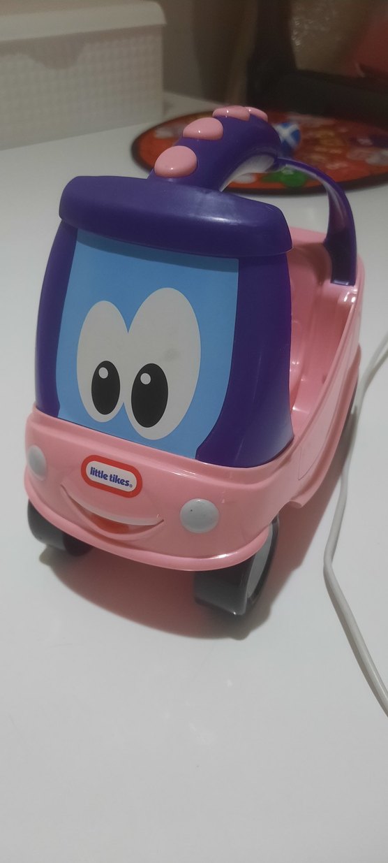Sevimli yüz tasarımlı, renkli pembe oyuncak araba, sağlam tekerlekler, iki farklı ses çıkartıyor, içinde piller var