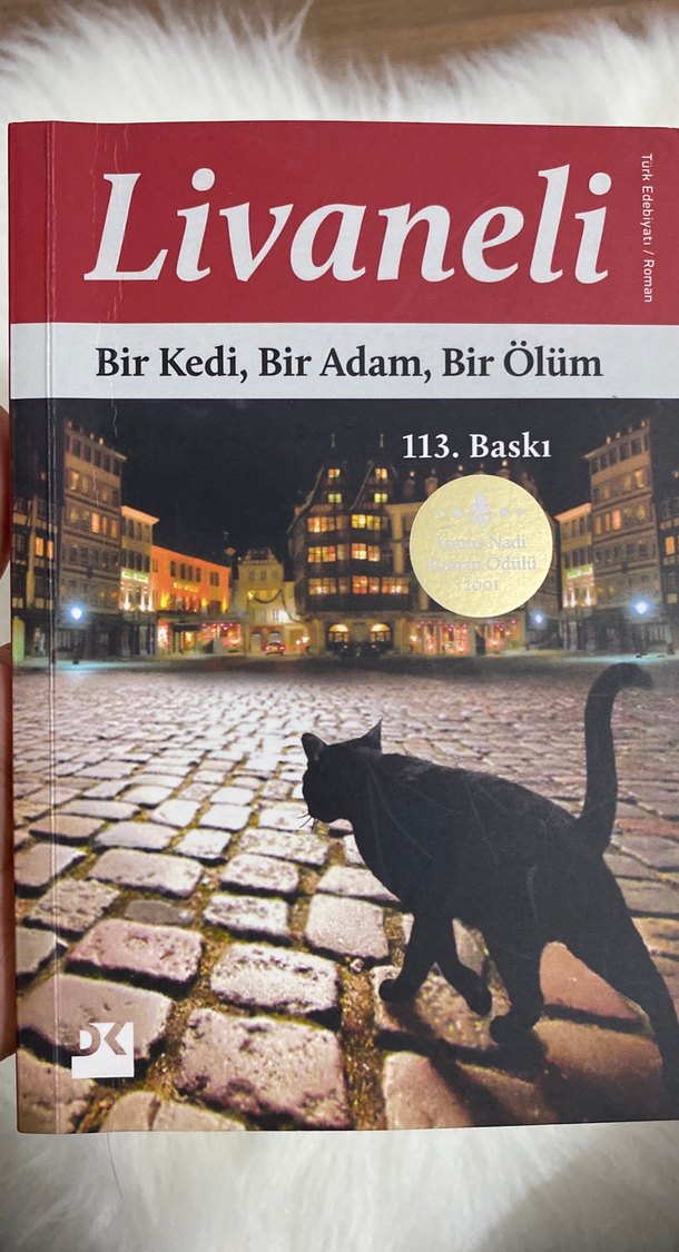 Livaneli'nin 'Bir Kedi, Bir Adam, Bir Ölüm' kitabı, gece siyah bir kedinin taşlı sokakta olduğu kapakla 113. baskı.
