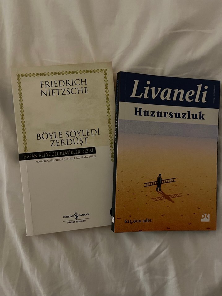 Livaneli'nin "Huzursuzluk" adlı romanı, derin temaları etkileyici bir anlatımla işliyor. Kapakta geniş bir alanda merdiven taşıyan yalnız bir figür yer alıyor.