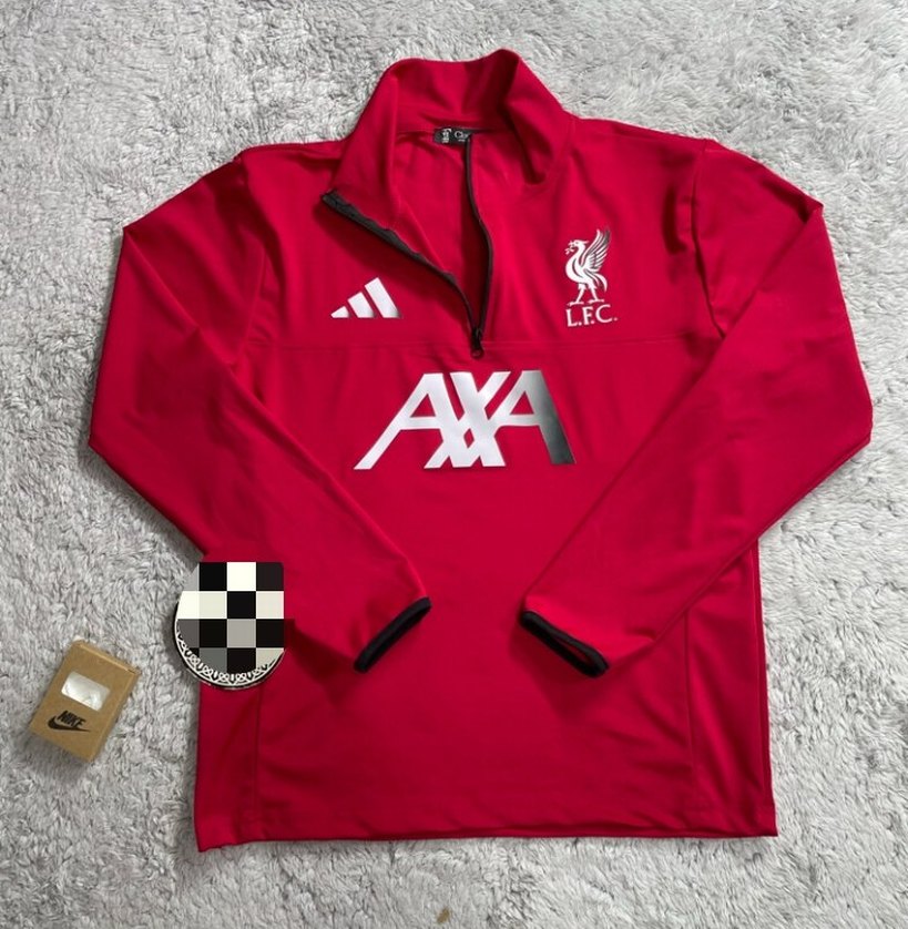 Yumuşak ve sıcak kumaştan yapılmış, yüksek yakalı ve uzun kollu kırmızı Liverpool sweatshirt. Fermuarlı ve baskılı logo detaylı, açık hava için uygun. tüm bedenler