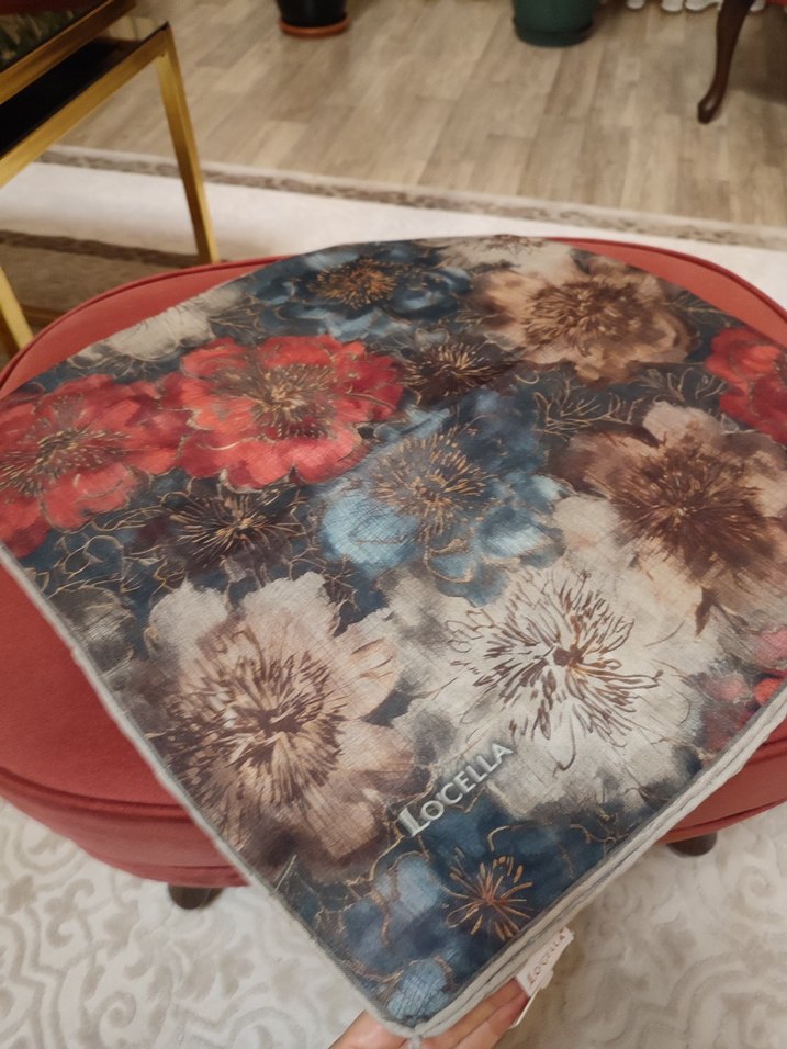 Kadınlar için çok renkli çiçek desenli, tokalı detaylı yumuşak sentetik kumaştan yapılmış vintage bohem tarzı fular.