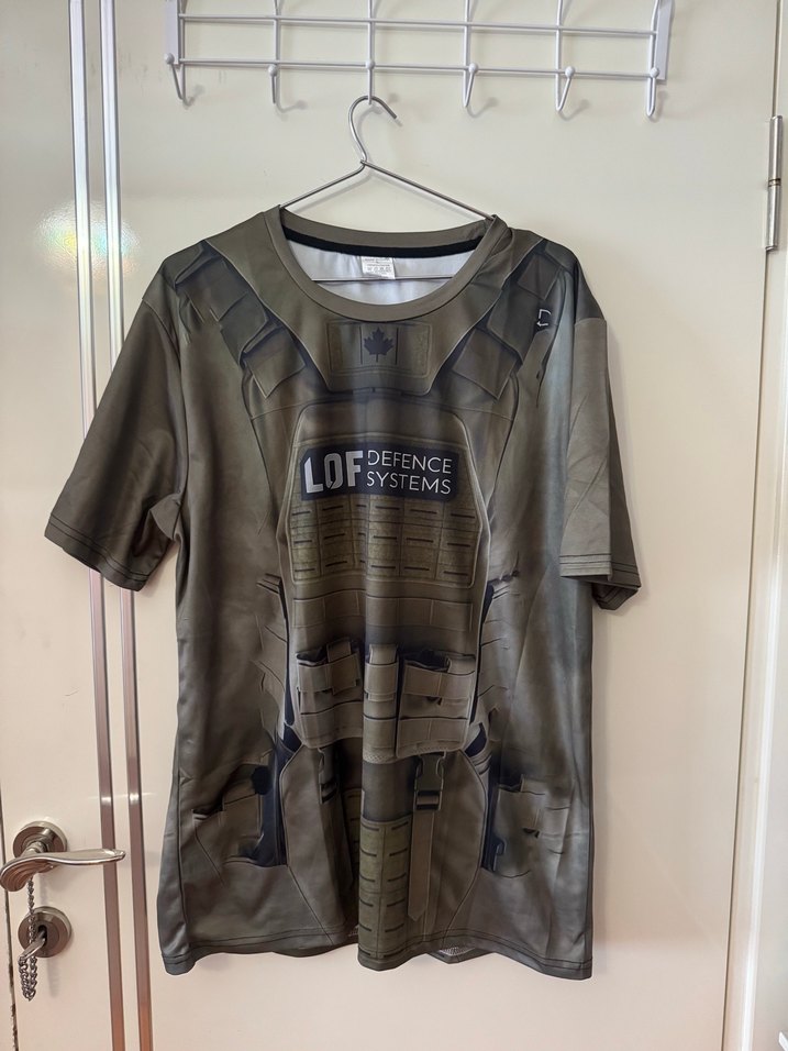 Geniş kesim, yuvarlak yaka, kısa kollu erkek tişörtü. Baskılı, kemer detaylı ve sentetik kumaşlı. Bej ve gri tonlarında, sokak modasına uygun.