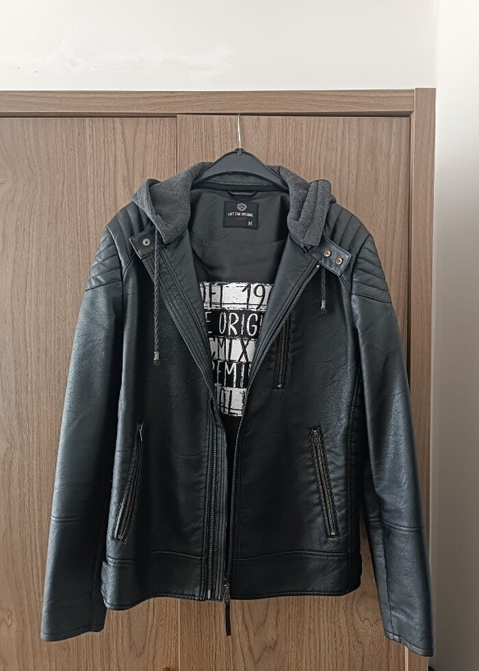 Loft Deri Ceket = M beden Erkek Deri Ceket 5 6 defadan fazla giymedim, sol kolda dikişi kısmında hafif deforme var ama iç kısımda kaldığı için belli olmuyor.
