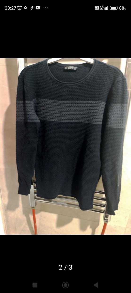 Uzun kollu, yuvarlak yaka ve fitted kesime sahip erkek triko kazak. Göğüste gri yatay çizgi bulunur. Günlük rahat kullanım için uygundur.