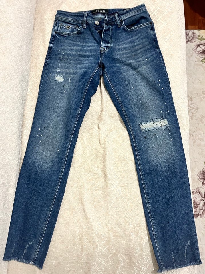 Ürünü geçtiğimiz yıl 2500 liraya aldım 4 sefer kullandım ürün loft markasının özel seri pantolonlarından tarz bir pantolondur. Fiyat verebilirsiniz konuşulur halledilir. Loft Düğmeli, batik desenli mavi erkek denim pantolon. Midi boy ve hafif dar kesim, sokak stili için uygun, günlük kullanıma ideal. Low raise model paça dar hafif