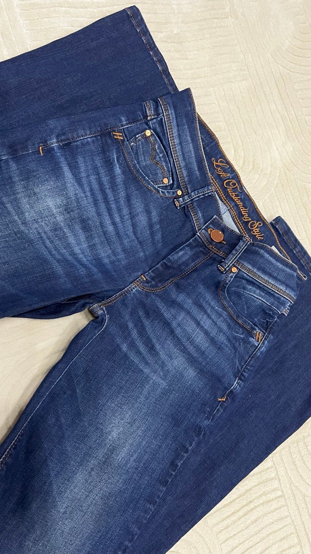 normal bel düşük de denebilir parlak mavi denim kumaştan yapılmış, günlük rahat kullanıma uygun flare model sorunsuzdur