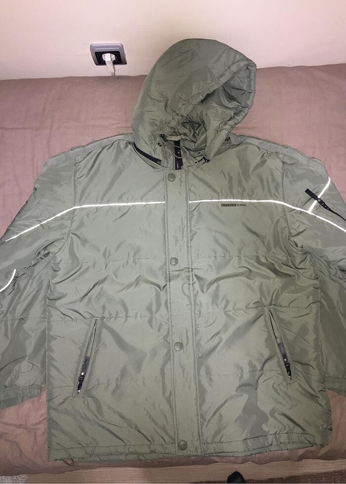 L benden az kullanıldı. Defosu, yırtığı yok. Resimde görülen reflektörlerinde biraz soyulma oldu sadece. Kapüşonu çıkabiliyor. #loft #mont #kaban #ceket