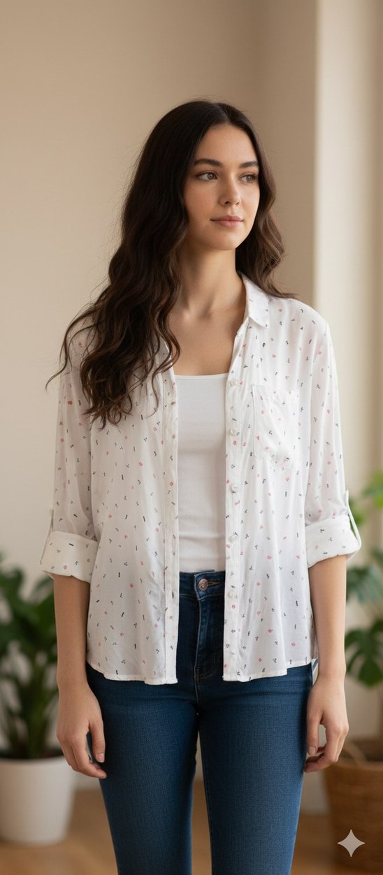 LOFT beyaz desenli kadın gömlek S beden mağazadan alındı Pamuklu kumaştan, düğmeli, uzun kollu, V yakalı, normal kesim beyaz desenli gömlek. Ofis günlük sokak stili için uygundur. 1-2 kez giyildi defosuz lekesiz tertemiz yeniden farksız kaçmaz fiyatta #loft #gömlek #beyaz