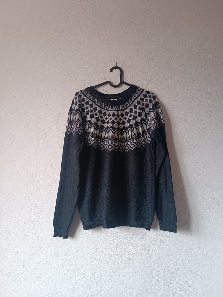 Logg marka Gri Desenli Örgü Yün Kazak