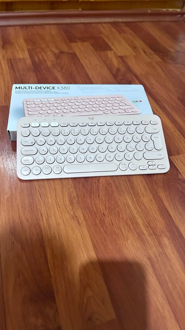pudra renkli Logitech K380 klavye TR, yuvarlak tuşları ve çoklu cihaz desteği ile kompakt ve şık bir yazma deneyimi sunar. ⌨️