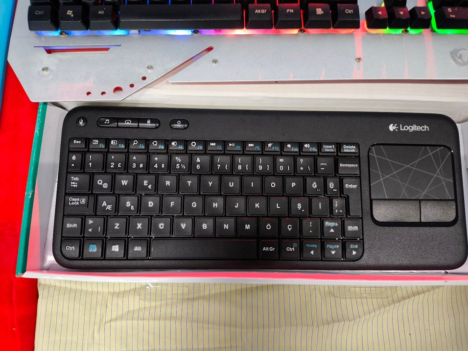 Temel Özellikler Entegre Dokunmatik Yüzey (Touchpad): Ayrı bir fare ihtiyacını ortadan kaldıran, 3,5 inç boyutunda geniş bir dokunmatik alana sahiptir. Kullanım Amacı: Oturma odasında koltuktan kalkmadan bilgisayar bağlantılı TV'leri veya HTPC sistemlerini kontrol etmek için optimize edilmiştir. Tak ve Çalıştır: Kutu içeriğindeki minik Unifying USB alıcıyı cihaza takarak anında kullanıma başlayabilirsiniz. Sessiz Tuşlar: Düşük sesli tuş yapısı sayesinde medya kullanımı sırasında gürültüsüz bir yazma deneyimi sunar. Medya Kontrol Tuşları: Ses açma/kapama, sessize alma ve ileri/geri gibi özel medya tuşları klayvenin üst kısmında yer alır. Teknik Özellikler Bağlantı: 2,4 GHz kablosuz bağlantı ile 10 metre menzil sunar. Pil Ömrü: 2 adet AA pil ile çalışır ve pil ömrü kullanım yoğunluğuna göre 18 aya kadar çıkabilir. Uyumluluk: Windows 7/8/10/11, Android 5.0 veya üzeri ve Chrome OS işletim sistemleriyle uyumludur.