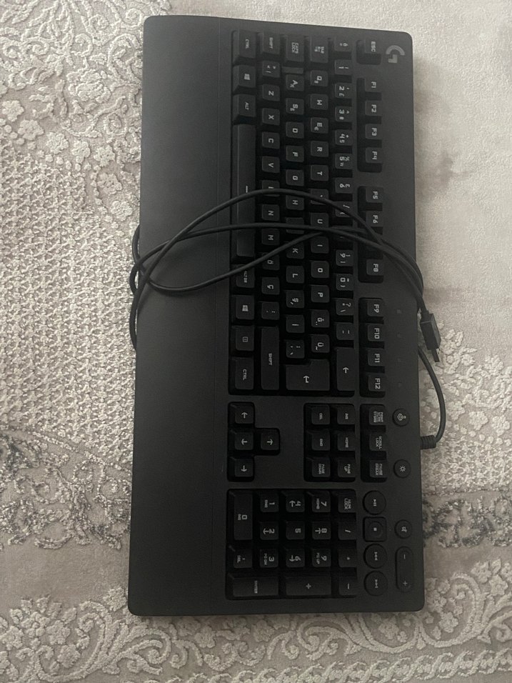 Logitech markasına ait tam sayısal tuş takımı ve multimedya tuşları bulunan siyah kablolu klavye.