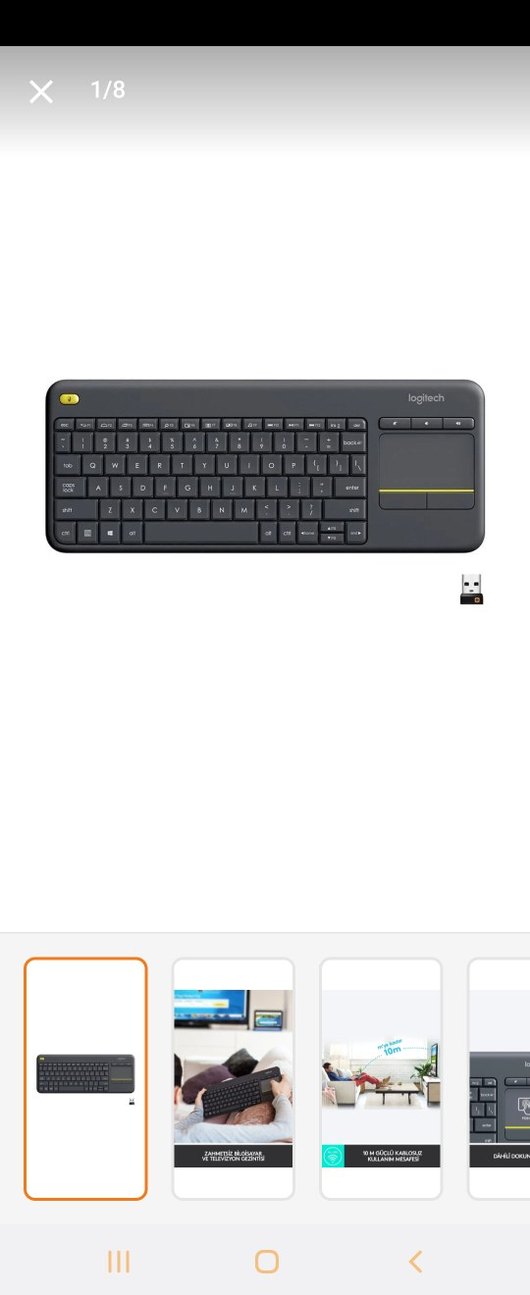 Logitech kablosuz mini klavye, entegre touchpad, koyu gri renk, kompakt tasarım ve USB alıcı ile birlikte gelir. Kolay kontrol sağlar. ⌨️