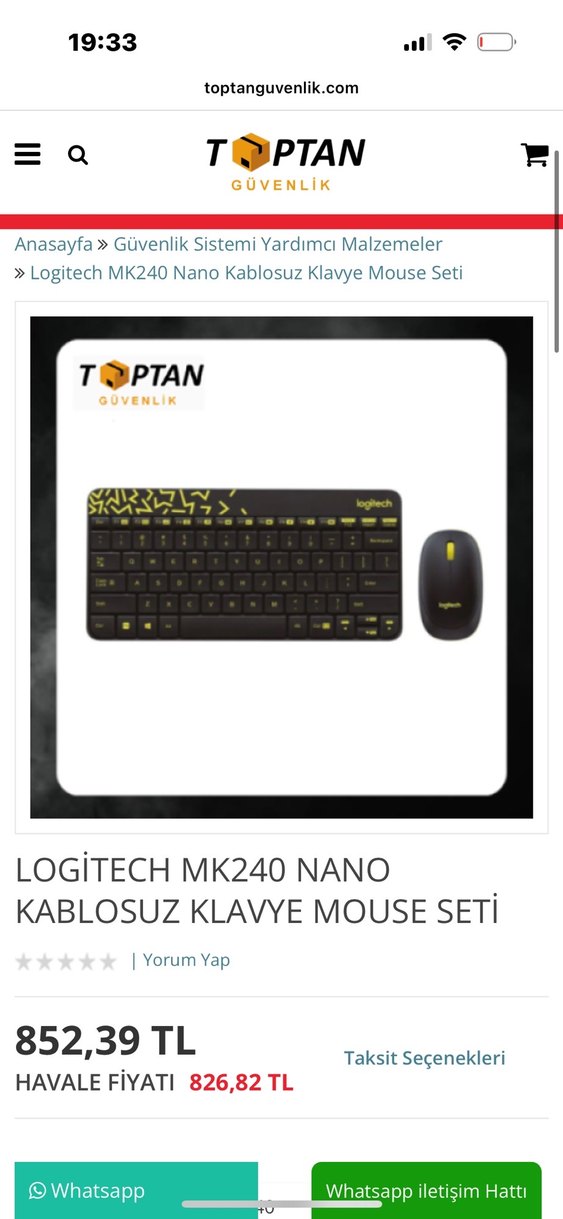 Logitech MK240 Nano kablosuz klavye ve mouse seti, siyah renkte, sarı detaylı, kompakt ve taşınabilir yapıda sunulur. ️
