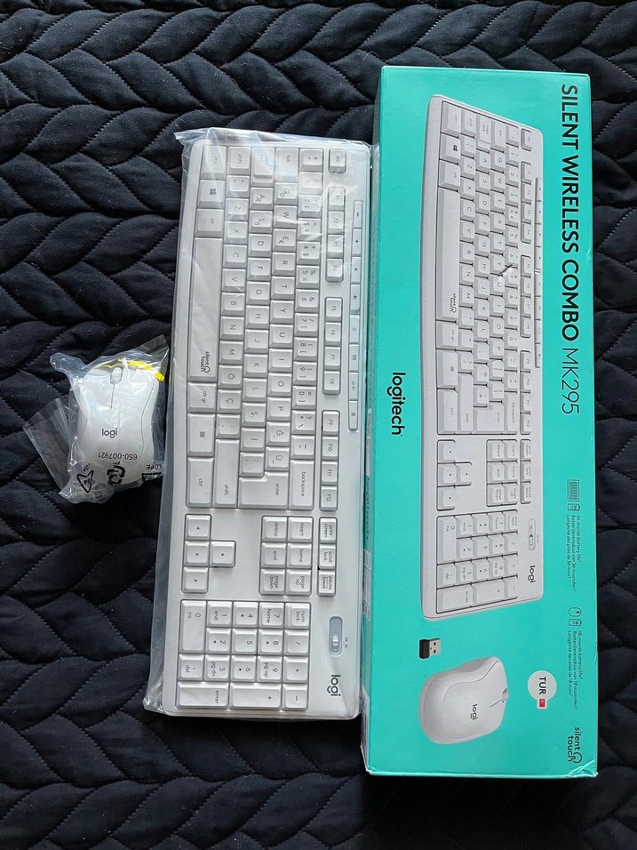 Logitech MK295 sessiz kablosuz combo, beyaz klavye ve fareden oluşur. Sessiz yazma ve kablosuz kullanım sağlar. ️ Mac mini için aldık fakat uyumlu olmadı apple ürünüyle iade etme süresi de 1 hafta olduğundan geri veremedim o yüzden satışa koydum.1 haftalık ürün sıfıra yakın nitelikte fiyat teklifi yapabilirsiniz