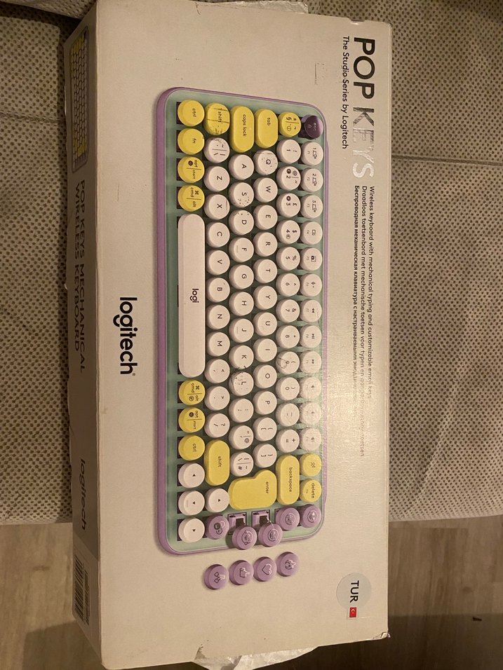 Logitech Pop Keys klavye, çok renkli ve yuvarlak, açık renkli tuşlara sahiptir. Ekstra mor tuş kapakları ile birlikte gelir. Hiç kullanılmadı, kutusuyla gönderilecektir.