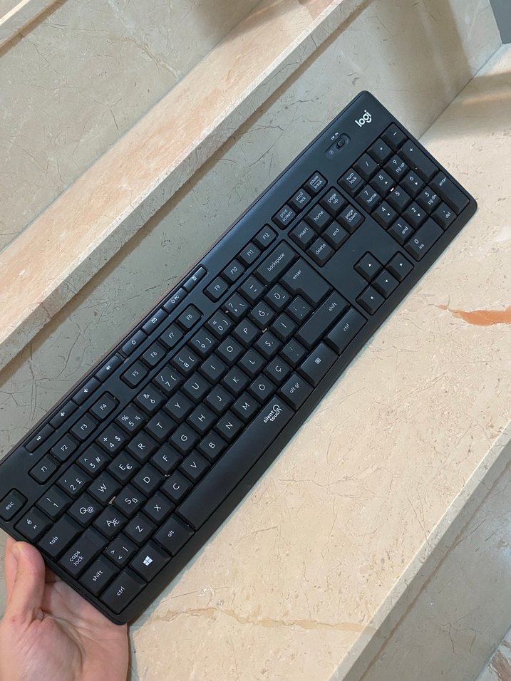 Logitech marka, sayısal tuş takımı ve tam düzenli siyah kablolu klavye. Rahat yazım sağlar. ⌨️ bazı tuşları basmıyo