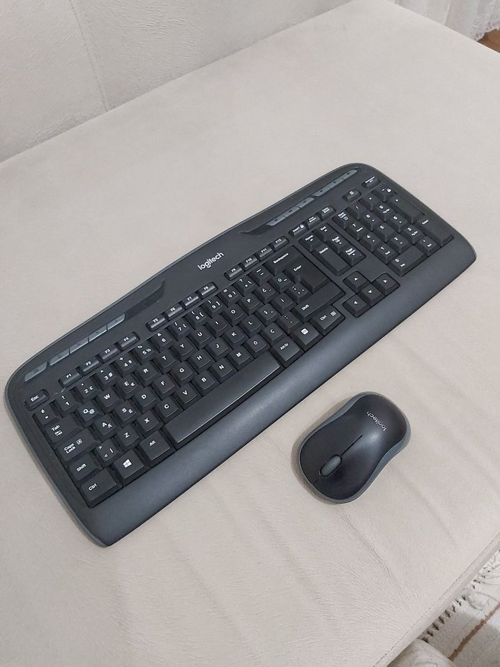 Logitech marka siyah kablosuz klavye ve mouse seti, tam tuş dizilimi. Tek dongle ile her iki cihazı da kontrol edersiniz. pilleri de benden, tak çalistir hemen kullanmaya basla... kirik bozuk yoktur.