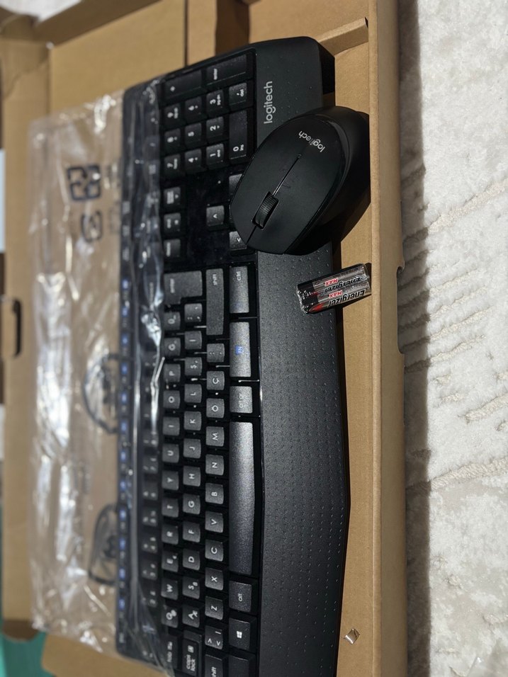 Logitech siyah kablosuz klavye ve mouse seti, rahat tuş tasarımı ve kompakt mouse ile. Piller dahil. Günlük kullanım için uygun. ⌨️