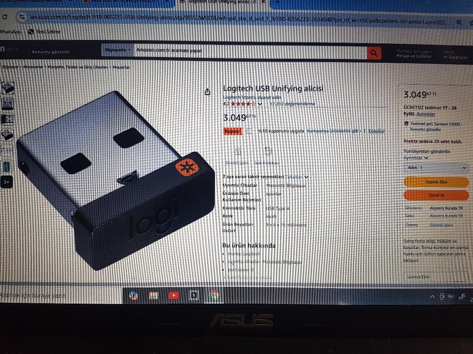Logitech USB Unifying alıcısı, siyah metal gövdesiyle kompakt ve dayanıklı bir yapıya sahiptir. Tek USB portuyla birden fazla mouse ve klavye cihazını kablosuz olarak bağlar.