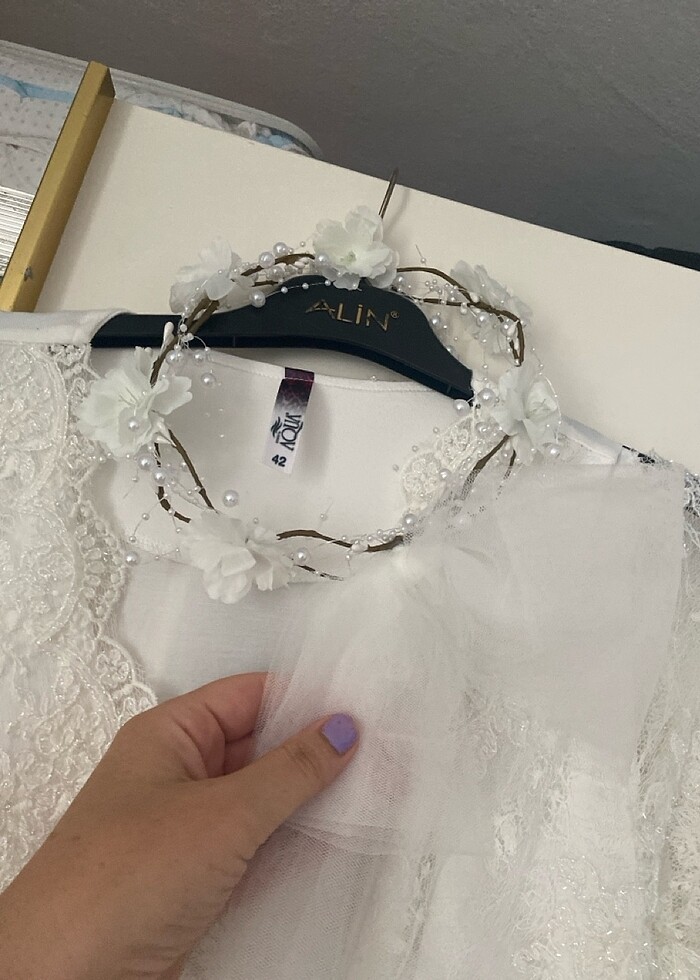 4 ay önce aldım Bebeğim Erken doğduğu için kullanmak kısmet olmadı yıkayıp ütülendim sadece hijyen takıntım olduğu için tacı ayrı olarak almıştım oda kullanılmamış yanında vereceğim çok şık bir takım ☺️ üründe 42 beden yazıyor ama esnek bir kumaşı var 38 40 42 bedenler için uygundur