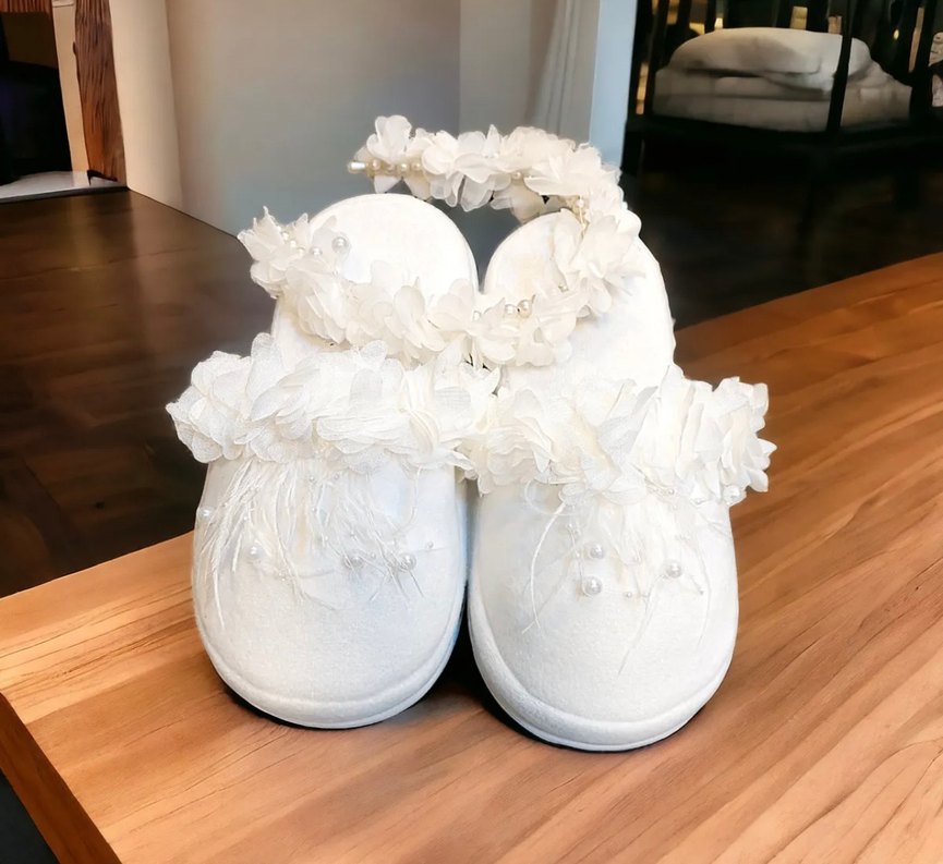Lohusa için Beyaz Nakışlı Kadın Terlik