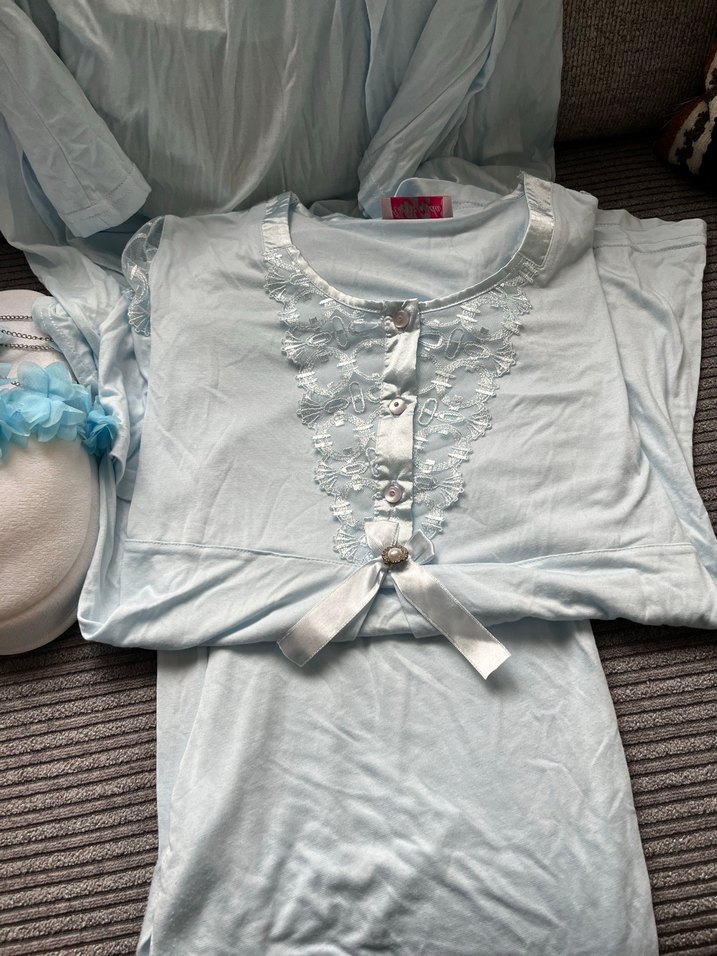 Lohusa takımı seti 2 sabahlıklı beyaz mavi