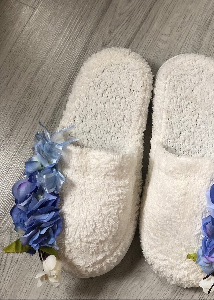 Özel yapım Ortanca ve beyaz Gülden oluşan taç ve terlik hastane de fotoğraf çekiminde ve kullanımı için çok şık bir ürün Sadece 1 kere kullanıldı hastane de ..hiç bir yerinde bir sıkıntı yoktur kirli değildi ama hijyenik olsun diye yine de yıkadım
