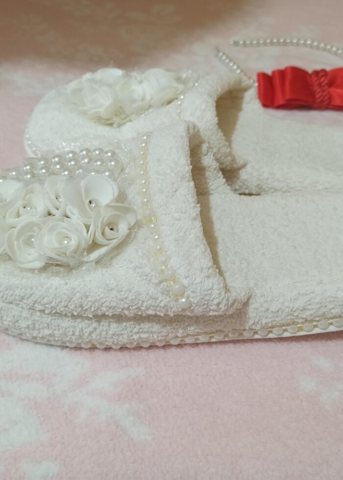Hastanede fotoğraf çekimi için terlik ve taç takimi. Ekstra kırmızı lohusa tacı da var yanında. Taçlar incili. Terlikleri alt tabanını hastanede kaymasin diye silikonlamistim ise de yaradı gerçekten hiç kayma yapmadı. Çok temiz ve çok az kullanıldı. Terlikler 38-39 numaraya uygun.