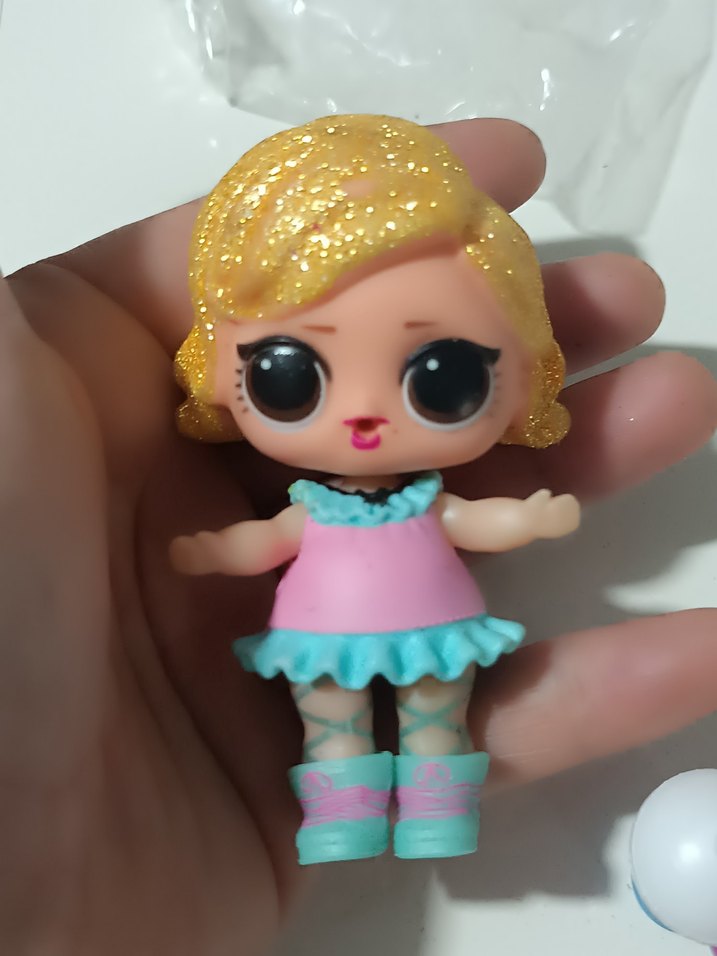 Parlak sarı saçlı, büyük siyah gözlü, pastel pembe elbiseli ve mavi detaylı botlu küçük oyuncak bebek. orjinal yurtdışı ürünüdür çoklu alımlarda lütfen ürün birleştirme isteyin