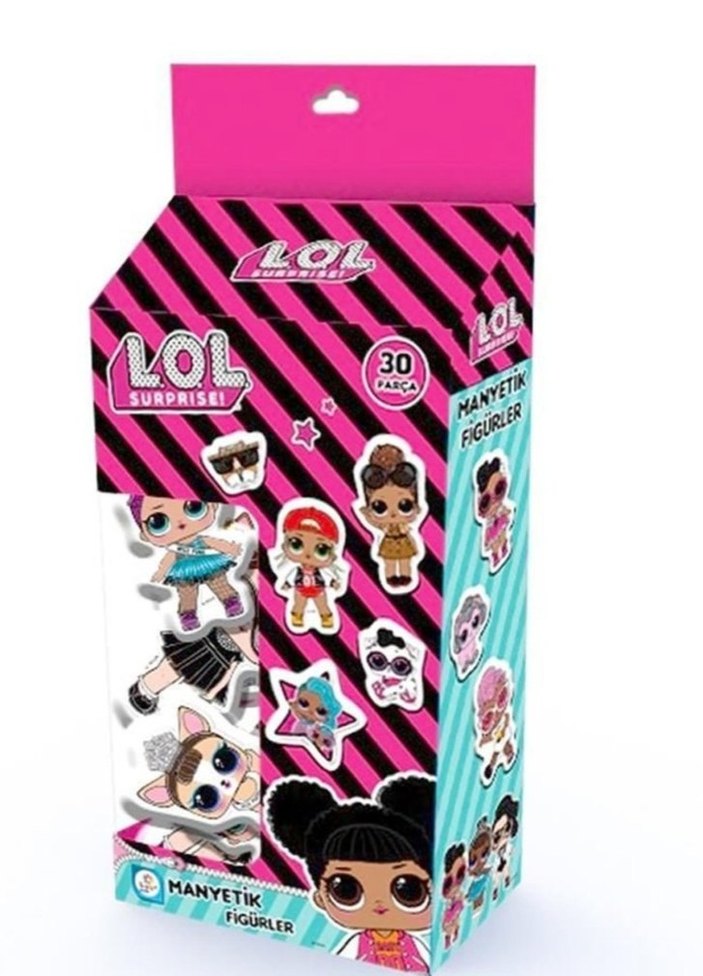 LOL Surprise manyetik figürler seti, 30 parçadan oluşur ve renkli karakterler içerir. Açık pembe ambalajı eğlenceli tasarımı öne çıkarır.