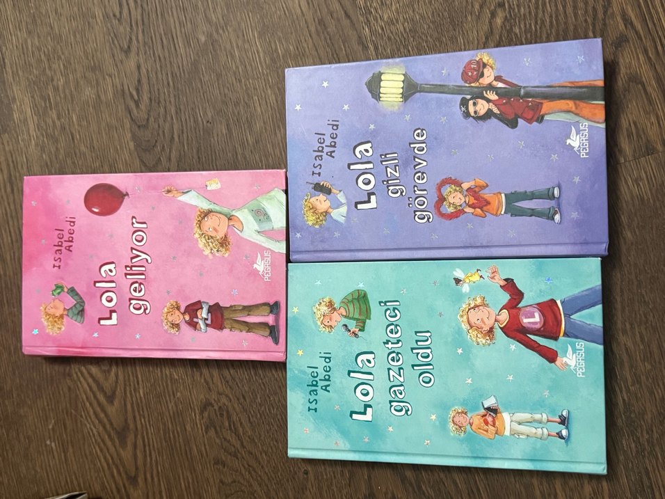 Isabel Abedi'nin Lola serisinden iki çocuk kitabı. Lola'nın gizli görevleri ve gazeteci olma maceraları renkli kapaklarda anlatılıyor.