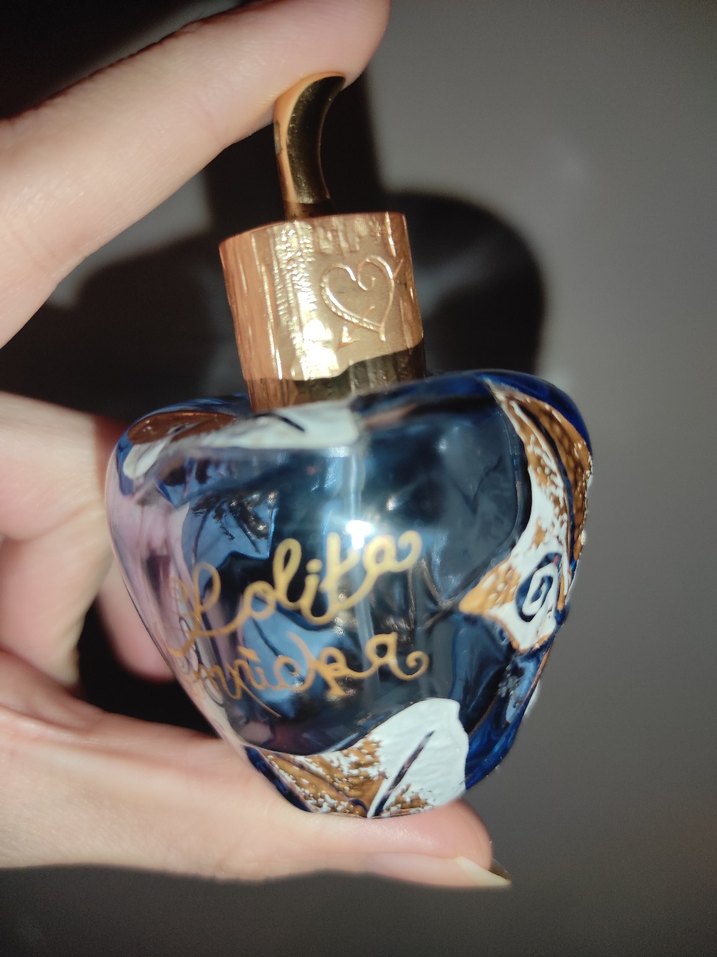 Lolita Lempicka kadın parfümü boş şişe. Yumuşak bir mor rengindedir ve kapağı altın renklidir. 30 ml'dir.