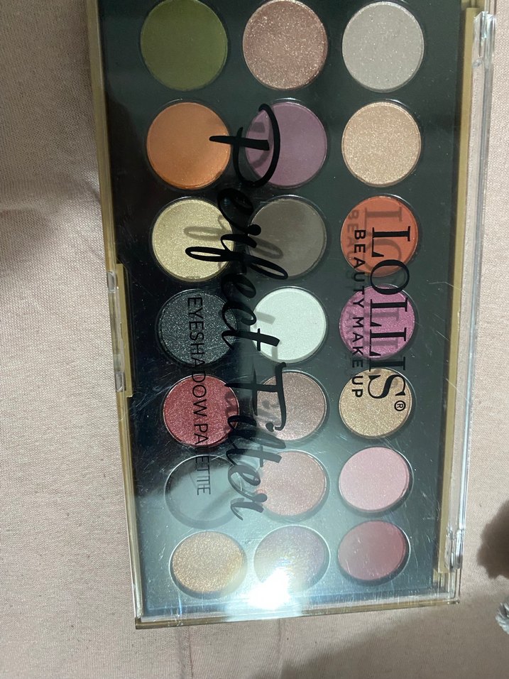 Lollis göz farı paleti, mat ve ışıltılı karışık koyu ve canlı tonlardan oluşur, çeşitli makyajlar için uygundur.