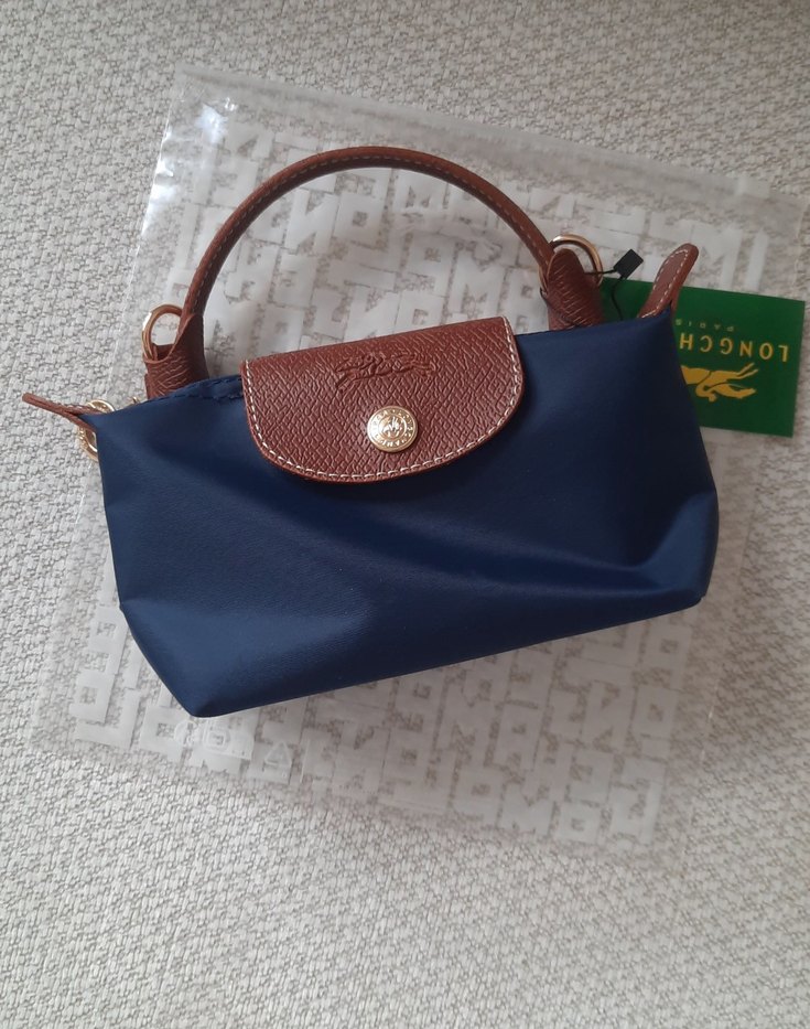 Longchamp mini xs pouch premium kalitede kendi logolu poşetinde