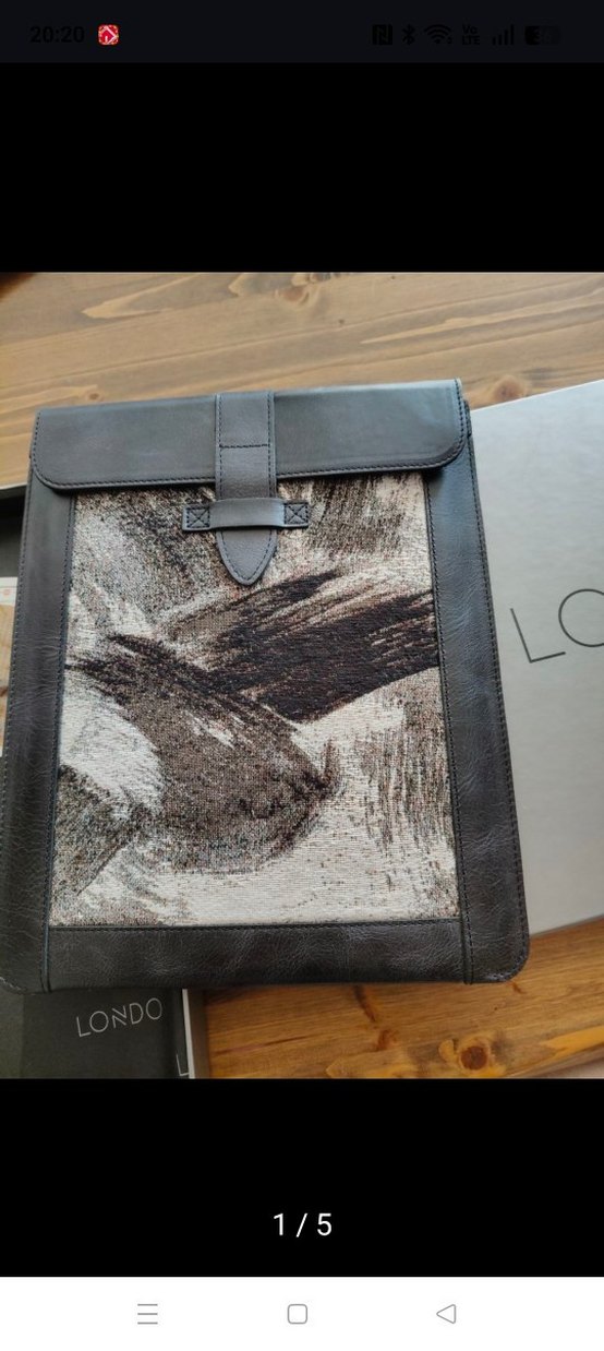 Gri baskılı deri ve tokalı kapaklı kadın laptop çantası, modern tasarımıyla ofis ve sokak stiline uyum sağlar. Marka: LONDO.