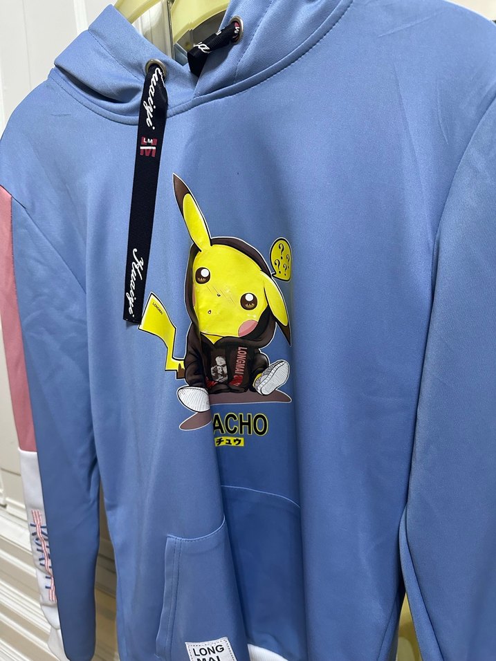 Önünde renkli Pikachu baskısı olan, uzun kollu, bol kesim mavi kapüşonlu sweatshirt. Düğme detayları ve kanguru cebine sahip, yumuşak ve sıcak kumaştan yapılmıştır. Ürün Çin’den getirtilmiştir. Long Mai markasının orijinal ürünüdür. 1 defa deneme amaçlı giyilmiştir. Kusursuzdur. #hoodie #menswear #sweatshirt #tshirt #mavi #lcw #defacto #lewis #mango #koton