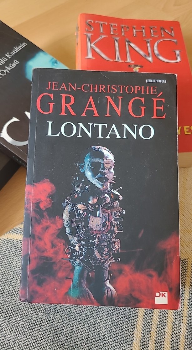 Jean-Christophe Grangé'nin Lontano adlı romanı, kırmızı dumanla çevrili etkileyici bir figürinle karanlık ve gizemli bir kapak sunuyor.