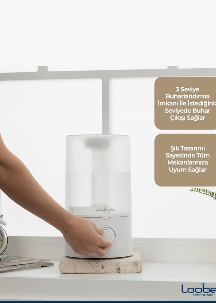 Loobex Buhar Makinesi ME-3140 ME-3140 ÖZELLİKLER 3 kademeli buharlaştırma imkanı ile istediğiniz sıcaklıkta buhar çıkışı sağlar Geniş aralık sayesinde kolay temizlik imkanı sağlar 3,5 Lt tank kapasitesi ile tek dolum ile gün boyu nemlendirme sağlar 360 derece dönen sıcaklıkta istediğiniz her alana nemlilik sağlar Ultra sessiz çalışma sistemi ile konforunuzu sağlar Geniş etki alanı ile, en büyük odalarda dahi hızlı hava sağlar Şık tasarım sayesinde tüm mekanlarınıza uyum sağlar Portatif yapısı sayesinde dilediğiniz tüm mekanlara uygun şekilde taşıyabilmenizi sağlar Su otomatik olarak kapanır ve güvenli moda geçer Düşük enerji sarfiyatı sayesinde elektrik Tasarruf sağlar Bebeğin odasında, evde ve her alanda kullanıma uygun Aromatik yağ haznesi ile kokulandırma yapma imkanı sağlar