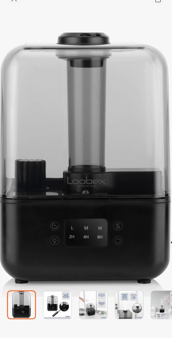 Loobex siyah hava temizleyici ve nemlendirici, M, 2H ve 4H zamanlayıcı ayarlarıyla kullanımı kolay, modern tasarıma sahiptir. ️