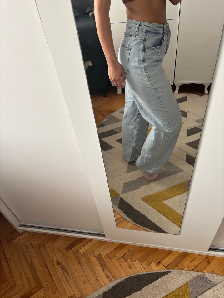 Loose fit kesim midi uzunlukta, desen içermeyen denim kadın kot pantolon, rahat ve şık bir görünüm sunar.