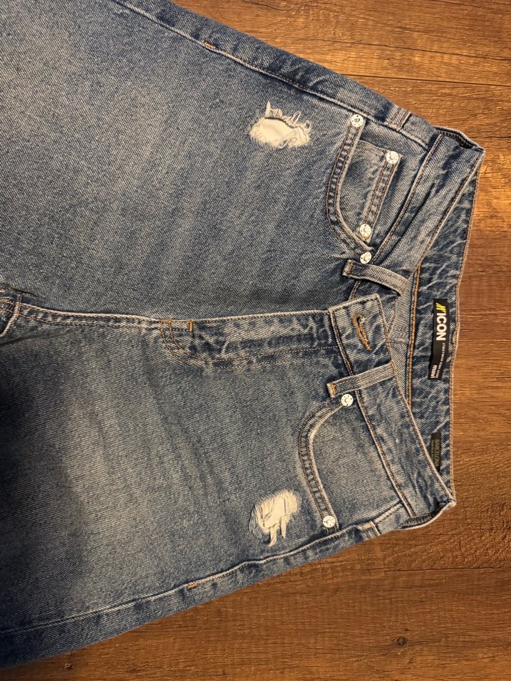 Yırtık detaylı, ve rahat kesim jean. Hayatımda giydiğim en rahat ve konforlu jean diyebilirim kilo aldığım için olmuyor o yüzden satıyorum. Mavi marka barcelona jean 23/27 beden 160 boy 45 kg yken giyiyordum