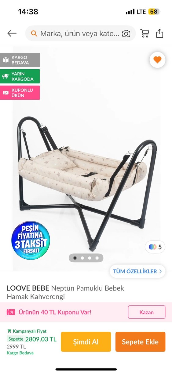 Elimde bu hamak beşikten mevcuttur. Kaldırdığım için fotoğrafını çekemedim ama isteyen olursa detaylı fotoğraf atabilirim. Temizdir bebeğim sevmediği için çok kullanamadım 1200₺ düşünüyorum ama indirim yapabilirim
