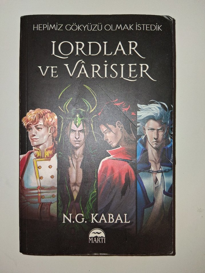 N.G. Kabal'ın "Lordlar ve Varisler" adlı romanı, dört farklı karakterin yer aldığı etkileyici kapak tasarımıyla miras ve arzuyu anlatıyor. Üründe katlanmalar var o yüzden uygun bir fiyata koydum.