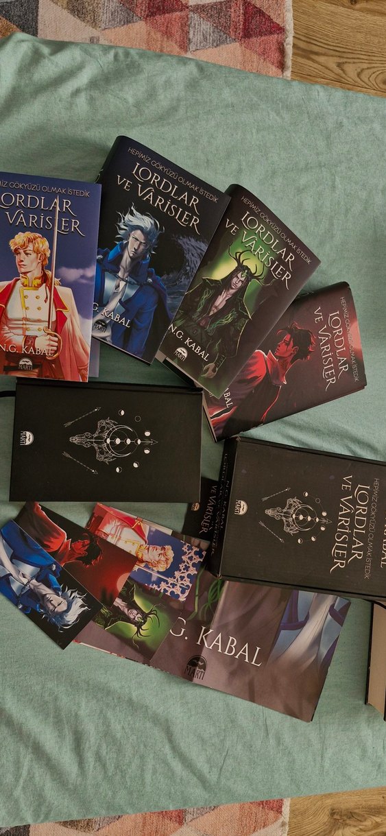 N.G. Kabal'ın 'Lordlar ve Varisler' adlı fantastik roman serisi, farklı karakterlerin kapak resimleriyle set halinde. 4 Ayrı kapak tasarımı seçeneği mevcuttur. 4 Ayrı karakter kartı ve posteri mevcut. Ayracı mevcut ve ciltli seçenek. Bir kez okundu bazı cümleler işaretli. Bir hasarı yok.