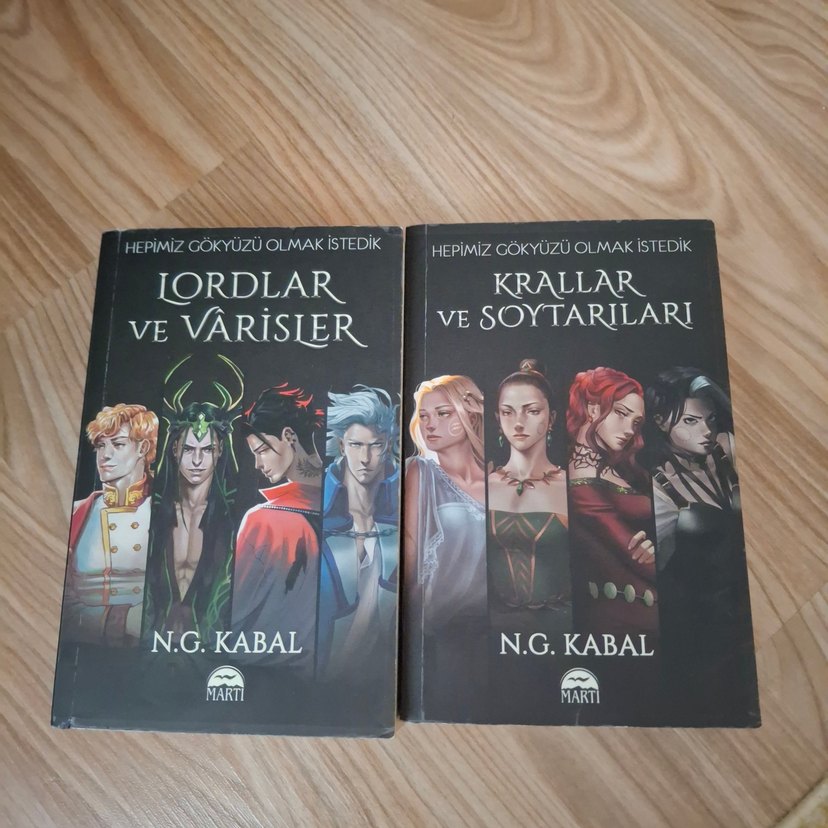 N.G. Kabal'ın 'Hepimiz Gökyüzü Olmak İstedik' serisinden 'Lordlar ve Varisler' ile 'Krallar ve Soytarılar' adlı iki romanı. ((Temizdirler altı çizili bir yer yoktur.))