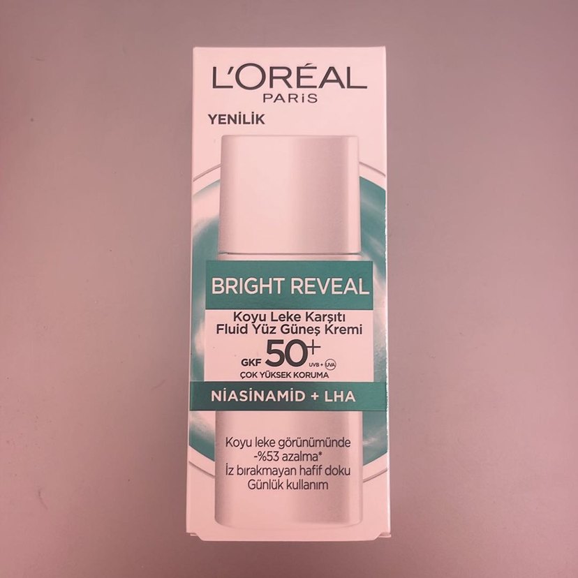 L'Oréal Bright Reveal SPF 50+ Koyu Leke Karşıtı Güneş Kremi watsontan yeni aldım hiç kullanılmadı L'Oréal Bright Reveal güneş kremi SPF 50+ ile yüksek koruma sağlar. Niacinamide ve LHA içerir, koyu lekeleri %53 azaltır. Hafif, iz bırakmayan doku günlük kullanım için uygundur. ☀️