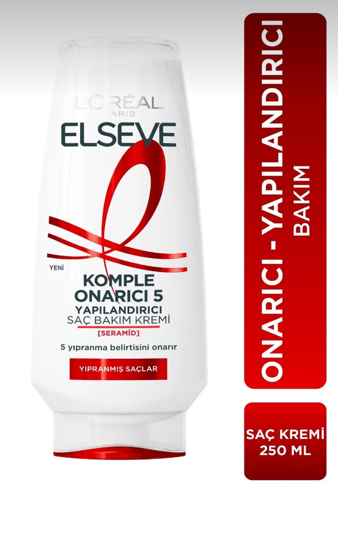 Loreal Elseve Komple Onarıcı 5 saç kremi, seramid içerir ve yıpranmış saçların 5 belirtisini onarır. 250 ml şişede saç bakım kremidir. ♀️